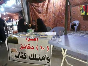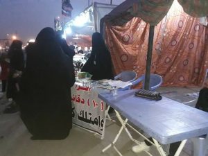 حيث انتشرت جموع المبلغات الرساليات التابعات لفروع الرصافة اللاتي تجاوز عددهن 90 مبلغة في مخيمات الوعي والإصلاح المتواجدة طول الطريق المؤدي لمدينة كربلاء المقدسة