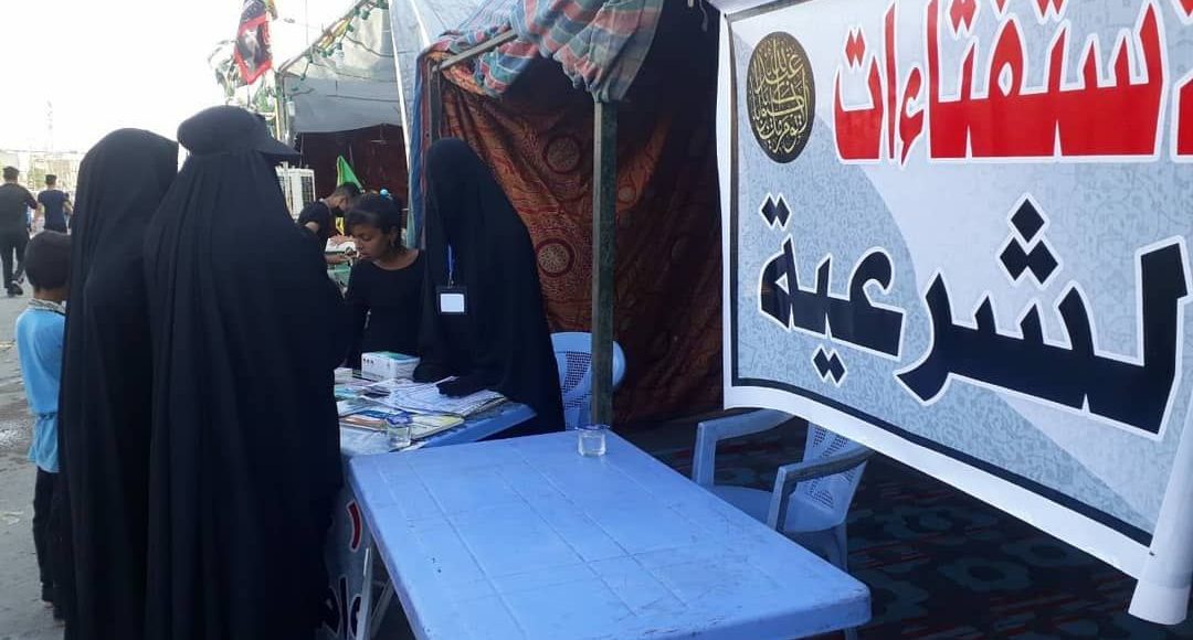 وذلك تلبية لخدمة زائري اربعينية الامام الحسين (ع ) حيث توزعت مهام المبلغات الكريمات بين الاستفتاء للمسائل الشرعية وبين النصح والأرشاد
