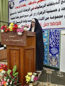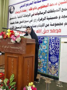 وقد تضمن المحفل تلاوة آيات مباركات من الذكر الحكيم تلته احدى مبلغات المجمع الكريمات وكما القى سماحة الشيخ احمد الزركوشي مسؤول مؤوسسة فيض الزهراء للايتام والفقراء كلمة قيمة بهذه المناسبة السارة ولم يخلو المحفل من الشعر والاهازيج حيث كان له النصيب الأوفر وكذلك تضمن الحفل فقرة أسئلة وأجوبة تهدى للفائزين صلوات مباركات وهدية قدمتها ادارة المجمع للايتام كماو تم تكريم كل من كان اسمه (محمد وصادق )بهدية خاصة تيمناً بهذه المناسبة الميمونة .