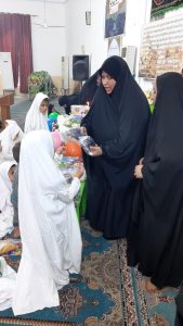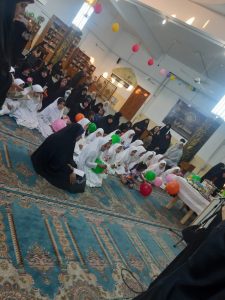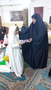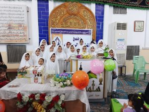 وكان برنامج الاحتفال بقراءة اية من الذكر الحكيم وإلقاء كلمة بهذه المناسبة وقصائد واشعار واهازيج وفقرة أسئلة واجوبة وأناشيد إسلامية وتوزيع هدايا وختاما بدعاء الفرج لصاحب العصر والزمان .