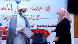تحت شعار ( محمد رسول الانسانية ) وبرعاية مكتب سماحة المرجع الديني الشيخ محمد اليعقوبي( دام ظله) في البصرة نظم مجمع المبلغات الرساليات فرع البصرة حفل تكريم للطالبات المتفوقات في دراستهن الاكاديمية ( السادس الاعدادي)