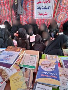 تابعت ” كان للطفولة نصيب من المعرض حيث اقيمت ورشة متكاملة للاطفال من رسم وتلوين ومسابقة مع هدية لصاحب الإجابة الصحيحة وايضاً محاضرات فقهية وإجتماعية .