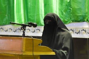 هذا وختم الحفل بكلمة للباحثة والمبلغة العلوية هدى الموسوي من مجمع المبلغات الرساليات و التي قدمت إلماحات توعوية ومناشدة لأهالي الفاو الإعزاء للتعاون مع بناتهم وأخواتهم وزوجاتهم ، وتوفير الأجواء المناسبة لهن لأجل الالتحاق بهذه المدرسة المباركة لما لذلك من أثر بالغ في تحقيق الوعي الديني وانعكاسه على دور المرأة الحيوي في تنشئة الجيل الصالح في الأسرة وعودة نفعه على المجتمع ليتمكن المرء المسلم من الوقوف بوجه مظاهر الانحراف والفساد التي يروج لها الغرب المعادي للاسلام
