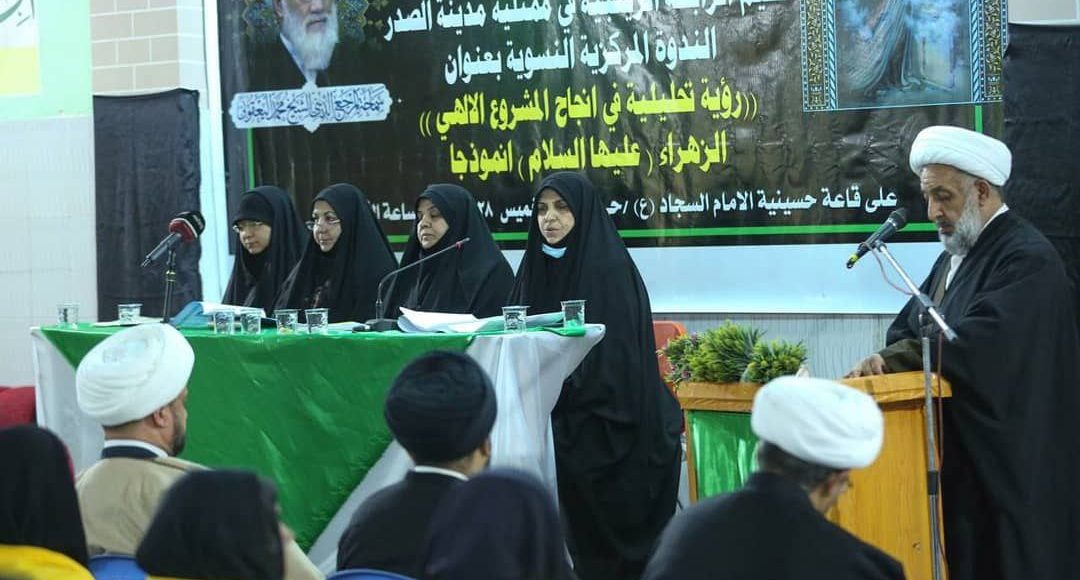 برعاية مكتب المرجع اليعقوبي بغداد الرصافة وبإشراف مباشر من ممثلية مدينة الصدر قامت الرابطة الزينبية النسوية في منطقة حي النصر بعقد ندوة فكرية بعنوان ” رؤية تحليلية في انجاح المشروع الالهي الزهراء ع ونموذجاً ” على قاعة حسينية الإمام السجاد عليه السلام في منطقة حي البتول
